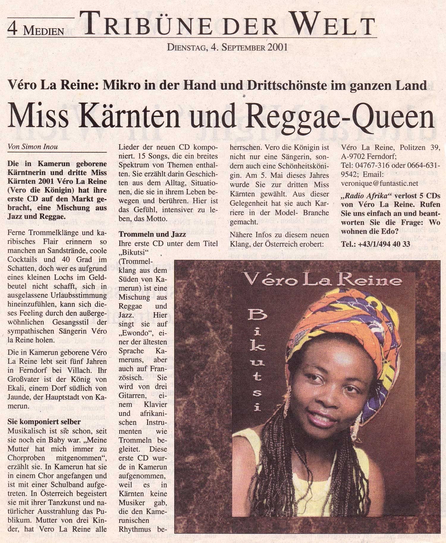 Um eine Anfrage an Véro zustellen, eine CD direkt bei Véro zu kaufen oder Véro für ein Konzert zu buchen, benutzen Sie unsere Kontakt-Seite.
